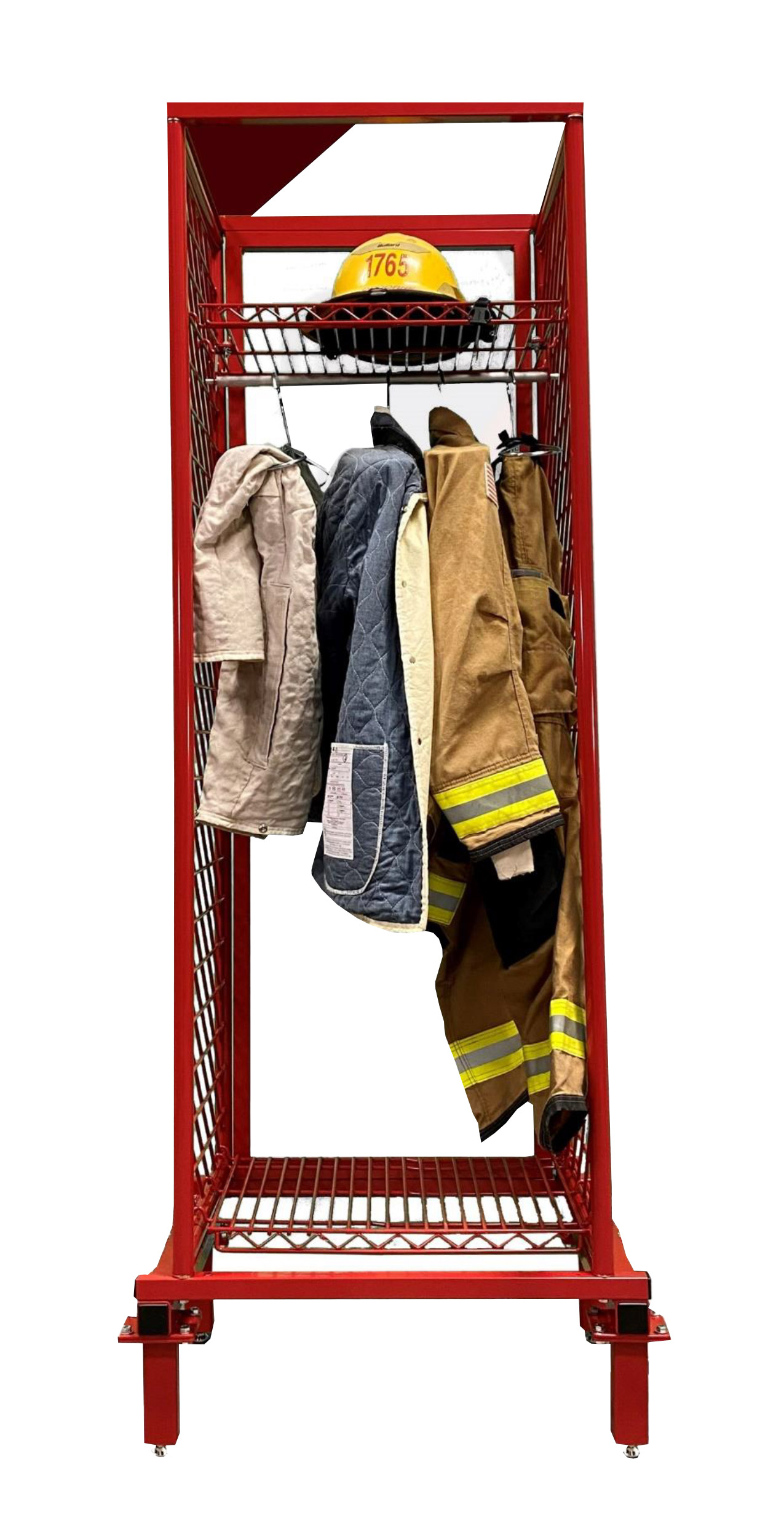 The Circul-Air Free Standing Gear Storage Lockers provide efficient and organized storage for firefighting and emergency response gear. Available in single-sided and double-sided configurations with multiple size options, these lockers are designed to maximize accessibility and durability. Each unit features adjustable helmet and boot shelves, a fixed hanger bar, nameplates, and leveling feet for added stability. Constructed with a rugged powder coat finish, they are built to withstand the demanding conditions of fire stations. Optional security features ensure gear remains safe and secure.