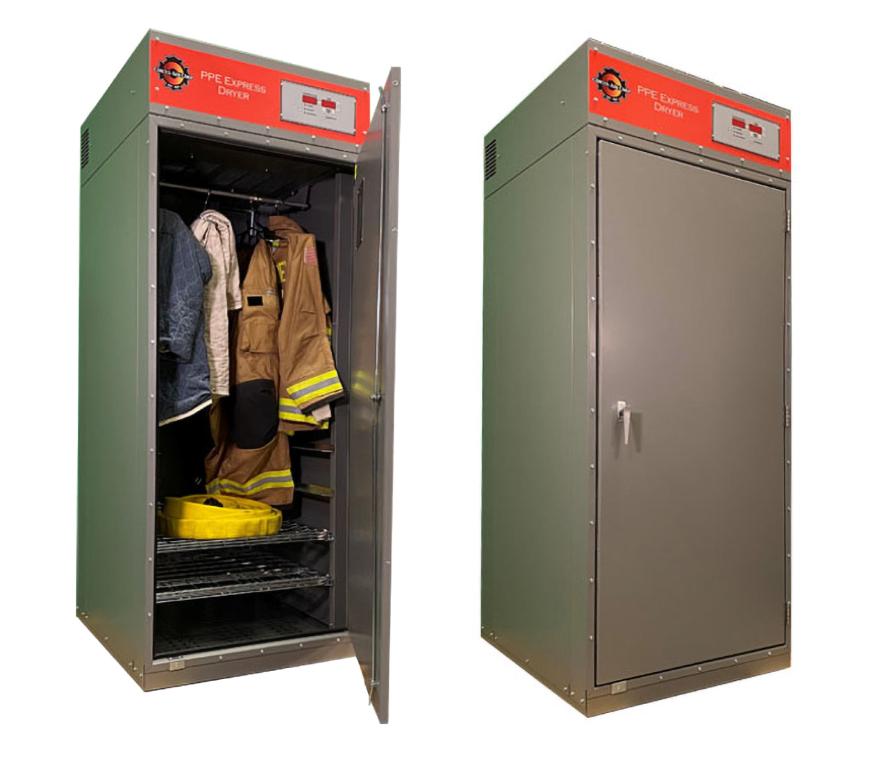 Express 2 Gear Drying Cabinet (V511) is a high-performance, commercial-grade drying solution designed to quickly and effectively dry firefighting gear while maintaining NFPA 1851 (2020 edition) compliance. With a capacity of up to 6 pieces of gear, this unit features preset drying cycles for turnout gear (3 hours) and hoses (10 hours). Its 600 CFM airflow and 1500-watt heating power ensure thorough drying, reducing moisture-related wear and extending PPE lifespan. Designed for convenience, it operates on a standard 120V plug, includes multiple hangers and racks, and is built with durable North American construction. CSA/ETL compliant and backed by a 10-year warranty