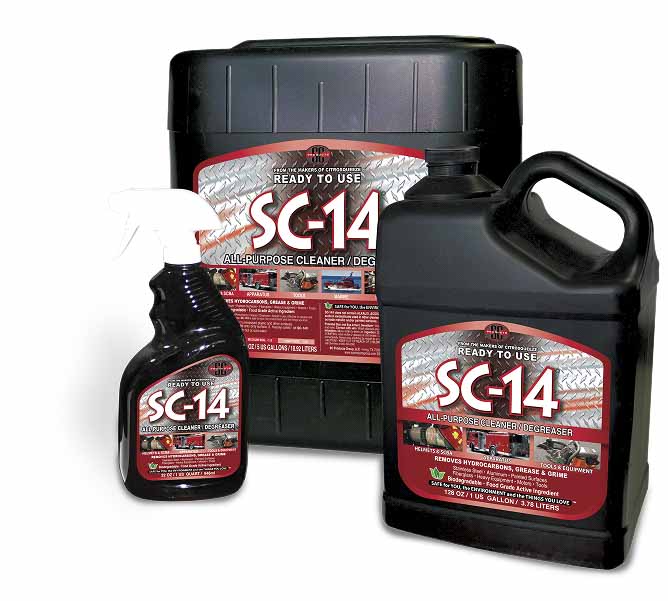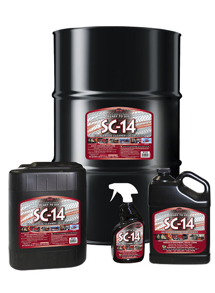 SC-14® All Purpose Station Cleaner is a powerful, ready-to-use solution for cleaning and degreasing fire stations, apparatus, and equipment. This biodegradable, non-corrosive cleaner has a near-neutral pH, making it safe for use on a wide variety of surfaces including painted metals, chrome, diamond plate, plastic, and glass. It effectively cuts through grease, grime, and hydrocarbon buildup without relying on harsh chemicals like Sodium Hydroxide or Sodium Metasilicate, which can damage finishes and decals.